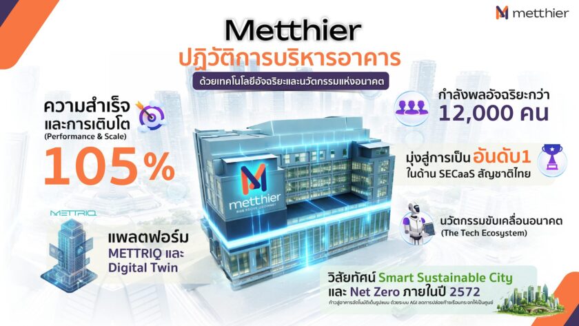 ทั้งนี้ ในปี 2569 ทาง Metthier ยังตอกย้ำการเป็นผู้นำ Smart Facility Management ด้วยการขยายฐานบริการสู่ “งานซ่อมบำรุงเชิงป้องกันแบบครบวงจร” (Total Preventive Maintenance) ที่ผสานขีดความสามารถของ AI เข้ากับความเชี่ยวชาญของทีมวิศวกร ผ่านแพลตฟอร์มอัจฉริยะ METTRIQ ซึ่งใช้เทคโนโลยี Digital Twin และ 3D Visualization จำลองโครงสร้างอาคารเสมือนจริงเพื่อวิเคราะห์ความเสี่ยงรอบด้าน ตั้งแต่การบริหารจัดการฝูงชนไปจนถึงความปลอดภัยเชิงรุก พร้อมระบบ Predictive Maintenance ที่คาดการณ์ความเสียหายล่วงหน้าได้อย่างแม่นยำ ช่วยลดความสูญเสียและเพิ่มประสิทธิภาพการจัดการอาคารในระยะยาว