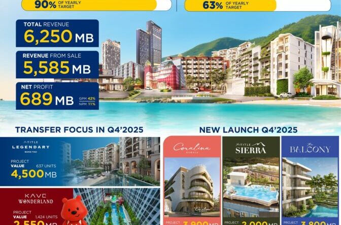 ในช่วง Q4 ปี 2568 บริษัทฯวางแผนเปิดโครงการ Leisure Condominium ใหม่ในภูเก็ต 3 โครงการ มูลค่าโครงการรวม 9,700 ล้านบาท ได้แก่ 1.โคราลิน่า กมลา (Coralina Kamala) คอนโดมิเนียมสไตล์รีสอร์ท ใกล้หาดกมลาที่ตอบโจทย์ทั้งการอยู่อาศัยและการลงทุน จำนวน 564 ยูนิต มูลค่ารวม 3,900 ล้านบาท 2.เดอะ ไทเทิล เซียร่า (THE TITLE Sierra) จำนวน 452 ยูนิต มูลค่ารวม 2,000 ล้านบาท และ 3.เดอะ บาลโคนี ในยาง (The Balcony Naiyang) จำนวน 542 ยูนิต มูลค่ารวม 3,800 ล้านบาท